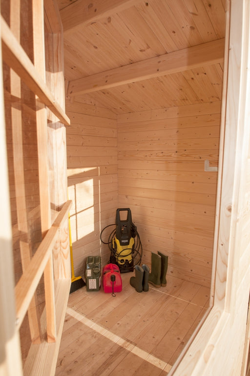 EAN 8057457154444Pino grezzo non trattatoTipologia costruttiva blockhouseSpessore Parete mm 19Dimensioni a terra cm 130x105Dimensioni interne cm 94...