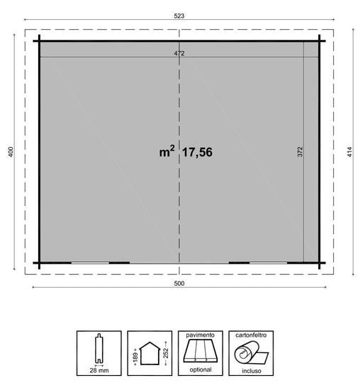EAN 8057457154154Abete impregnato in autoclave color marrone e essicatoTipologia costruttiva blockhouseSpessore Parete mm 28Dimensioni a terra cm 2...