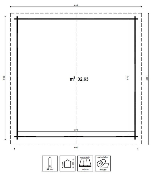 EAN 8057457155311Abete grezzo non trattatoTipologia costruttiva blockhouseSpessore Parete mm 44Dimensioni a terra cm 600X550Dimensioni interne cm 5...