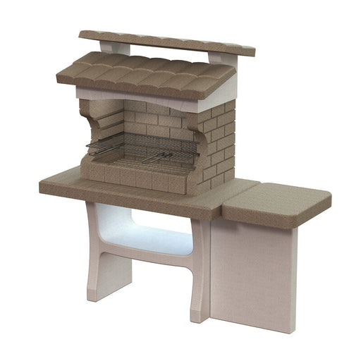 Mod. Luxor Barbecue In Pietra Ricostruita Con Tavolo Laterale Per Ampia Superficie Di Lavoro. Focolare E Tetto In Stile Briquette Con Griglia Di Co...