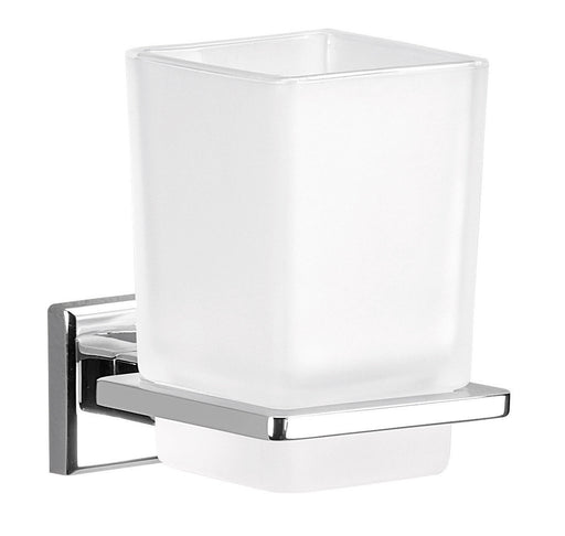 In Acciaio Inox E Cromall, Contenitore In Vetro Satinato Art. 6910 Portaspazzolini. Portata Max 7 Kg. 10 Anni Di Garanzia. Dimensioni 7 X 10,5 X H ...